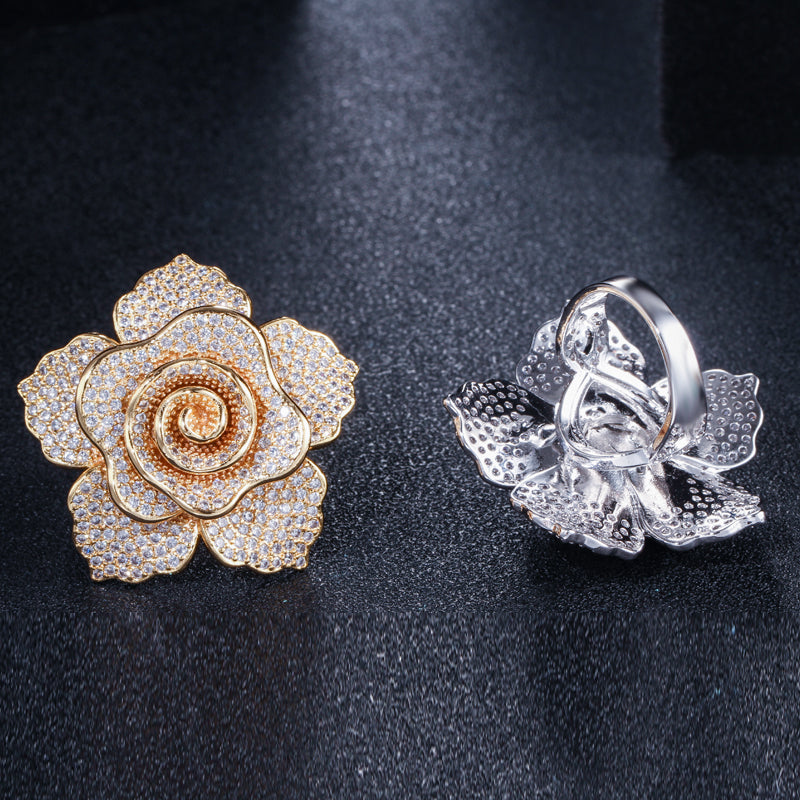 VERONA Cubic Zirconia Statement Rose Ring - Gold or Silver