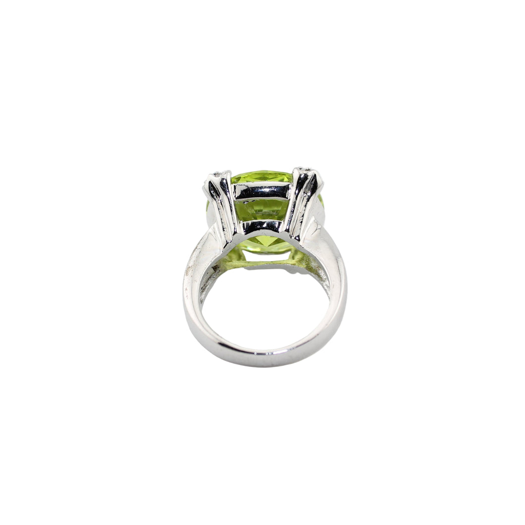 Vivid and captivating, the Persephone Ring is inspired by the goddess of spring and renewal. Its bold, faceted green crystal centerpiece radiates natural brilliance, secured by four gleaming prong settings accented with sparkling cubic zirconia. Set in a sleek silver-tone band, this designer piece balances strength and elegance, making it the perfect statement accessory for evening glamour, cocktail styling, or everyday sophistication with a touch of goddess energy.